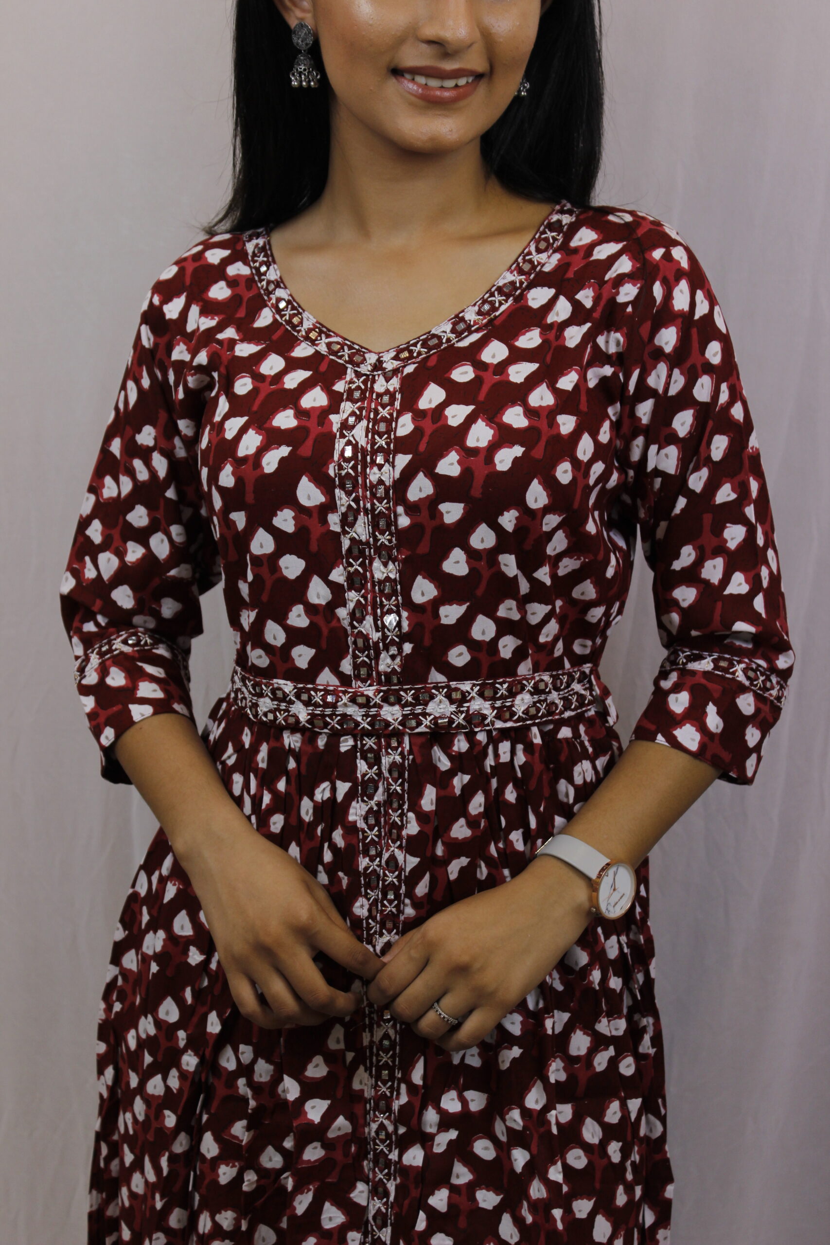 Be the first to review “Ethnic Cotton Mehroon Long Dress”