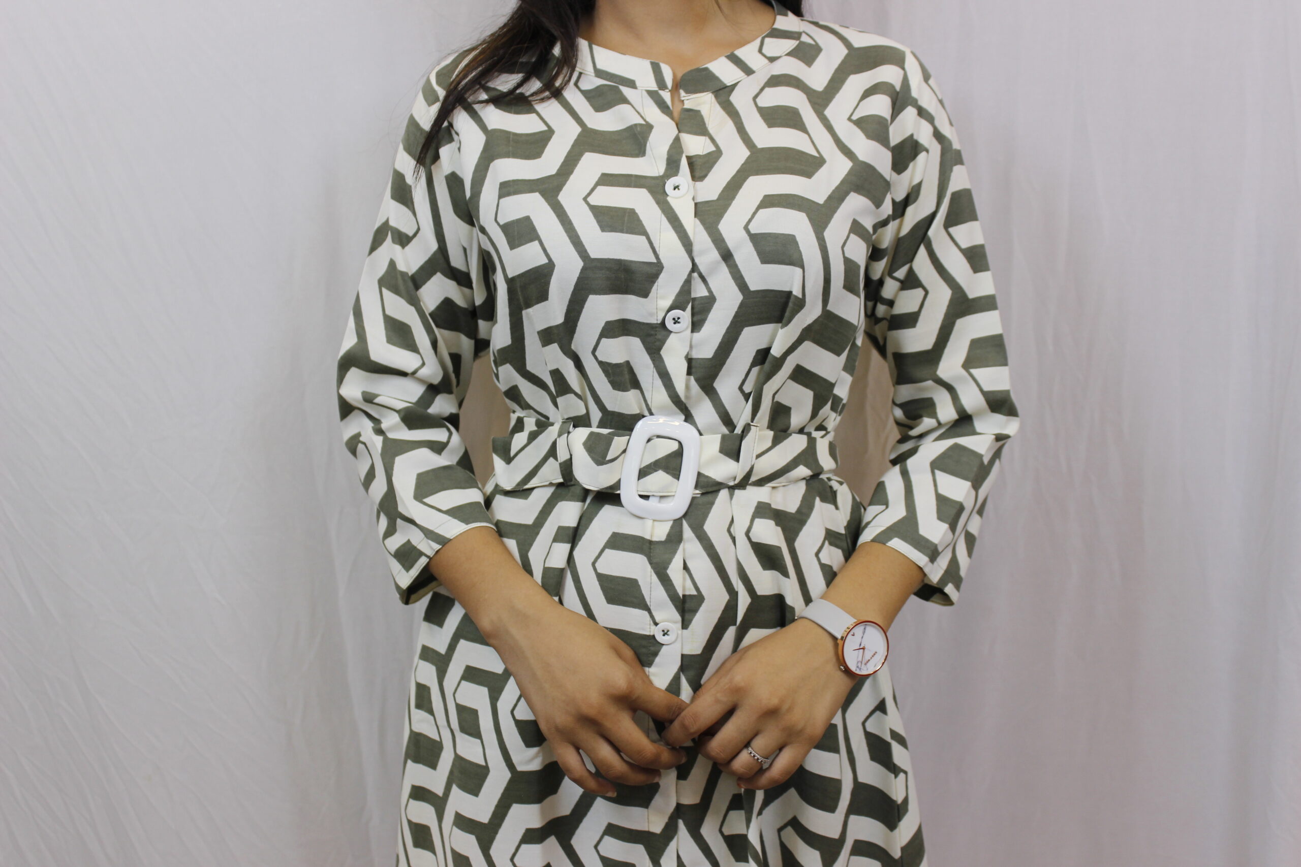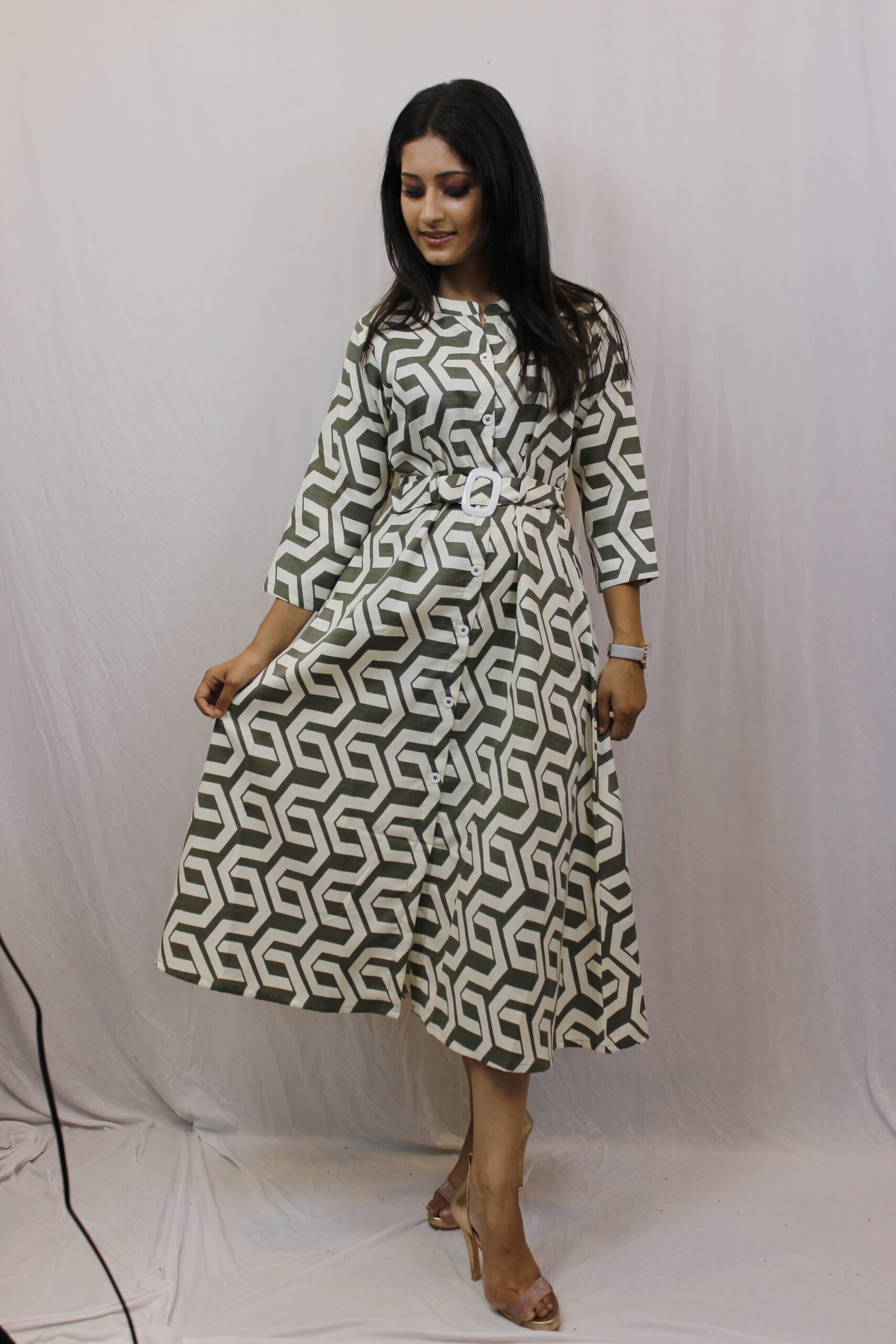 Divrat Olive Green Midi Dress: Step into elegance with the Divrat BOlive Green Midi Dress, a perfect blend of sophistication and contemporary style. Crafted with meticulous attention to detail, this dress is designed to make a bold statement while ensuring comfort and ease of wear.