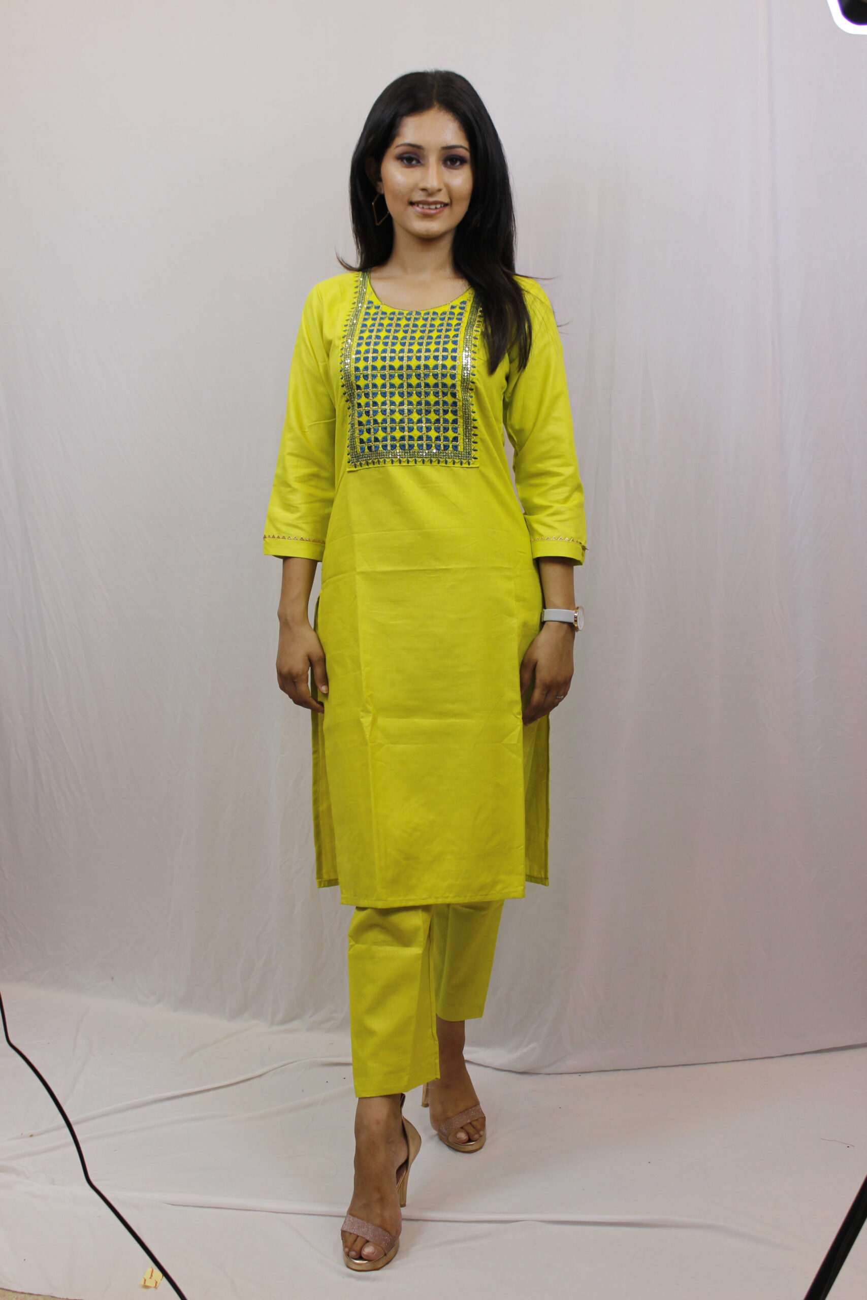 Product Description: Divrat Parrot Green Kurta Set With Embroidery Work