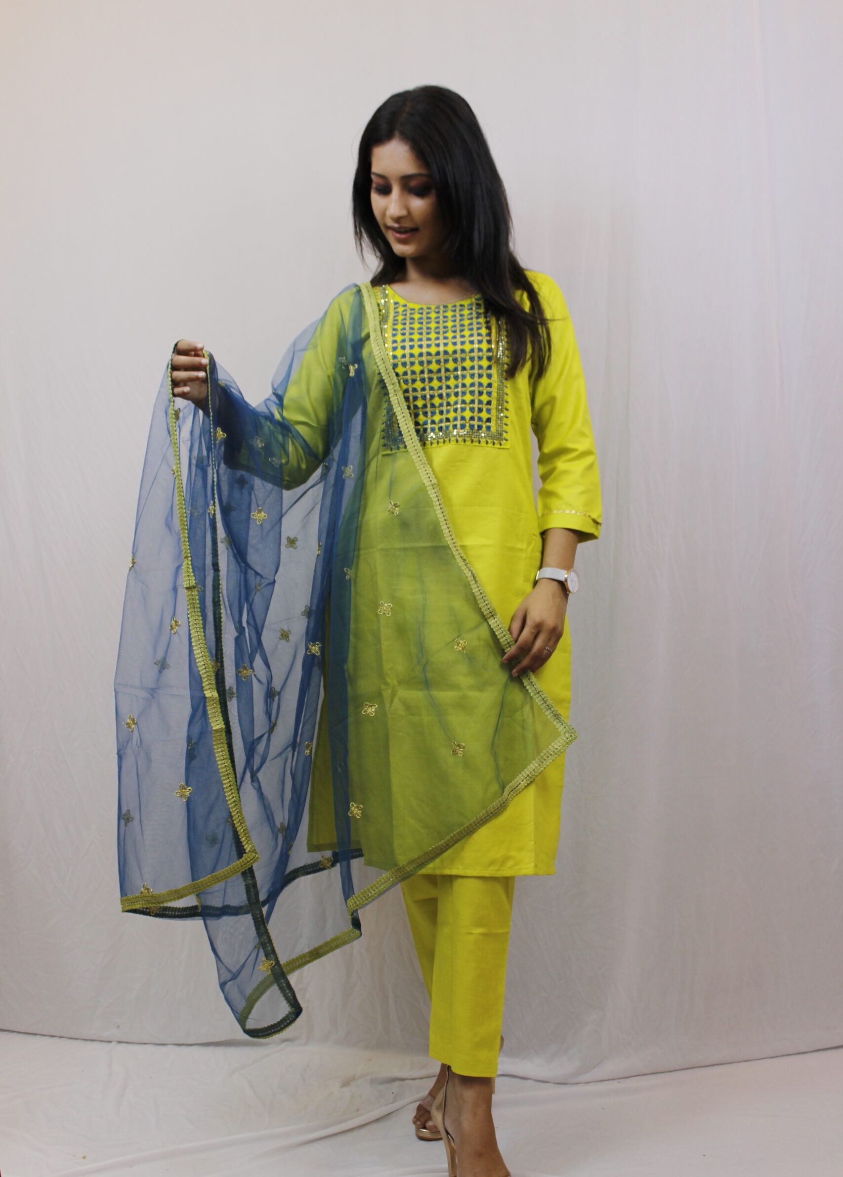 - Material: Made from high-quality, Georgette fabric, the dress offers a luxurious feel against the skin, making it perfect for all-day wear. The fabric has a slight stretch, providing a flattering fit for various body types.